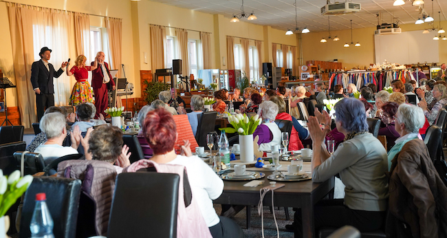 Lübbenau: Zwei Durchgänge in der Bunten BühneIn Lübbenau fanden die Frauentagsveranstaltungen in zwei Durchgängen in der Bunten Bühne statt. Einige Besucherinnen kamen als Freundesgruppen oder verabredeten sich gezielt in ihren Wohngebieten. Auch langjährige Hausgemeinschaften und Freundschaften, die über Umzüge hinweg bestehen, waren Thema in Gesprächen am Rande des Programms.