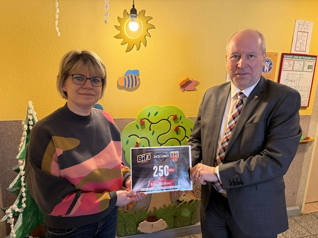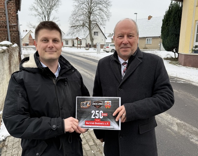 Die Aufteilung der Spendensumme übernahm Bürgermeister Mahro. Bereits am 9. Januar 2026 besuchte er zwei Einrichtungen in Guben, um die Zuwendungen persönlich zu überreichen. Eine Spende in Höhe von 250 Euro erhielt die Kita „Waldhaus“, die sich in unmittelbarer Nähe zur BiFi-Fabrik befindet. Die stellvertretende Leiterin Ramona Hannaske nahm den Scheck dankend entgegen. Weitere 250 Euro gingen an den Dorfclub Deulowitz e. V. Der Vereinsvorsitzende Stefan Kühn bedankte sich für die Unterstützung und betonte, dass die Spende gezielt für einen sinnvollen Zweck im Vereinsleben eingesetzt werde.