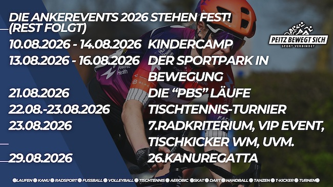 Details zum Programm, zu den einzelnen Wettkämpfen und zur Teilnahme werden rechtzeitig vor Beginn der Veranstaltung veröffentlicht. Informationen sind auf der offiziellen Internetseite unter www.peitz-bewegt-sich.de sowie über die Social-Media-Kanäle von „Peitz bewegt sich“ auf LinkedIn, Instagram, TikTok und Facebook abrufbar.
